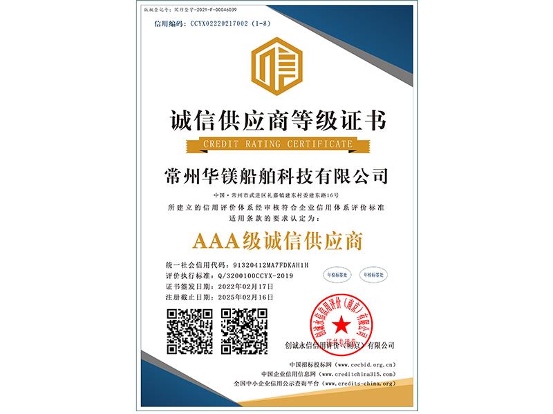 誠信供應(yīng)商等級證書